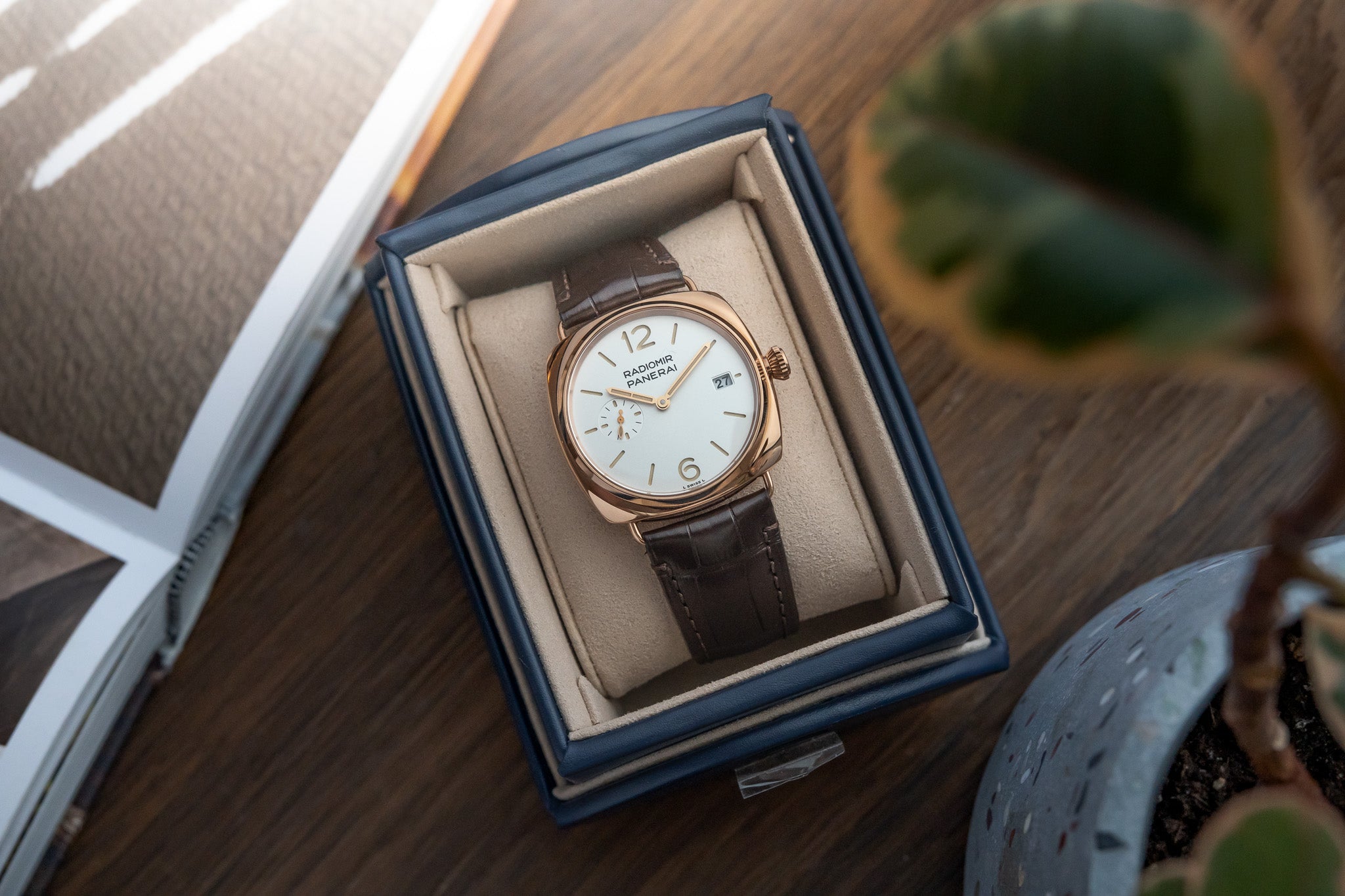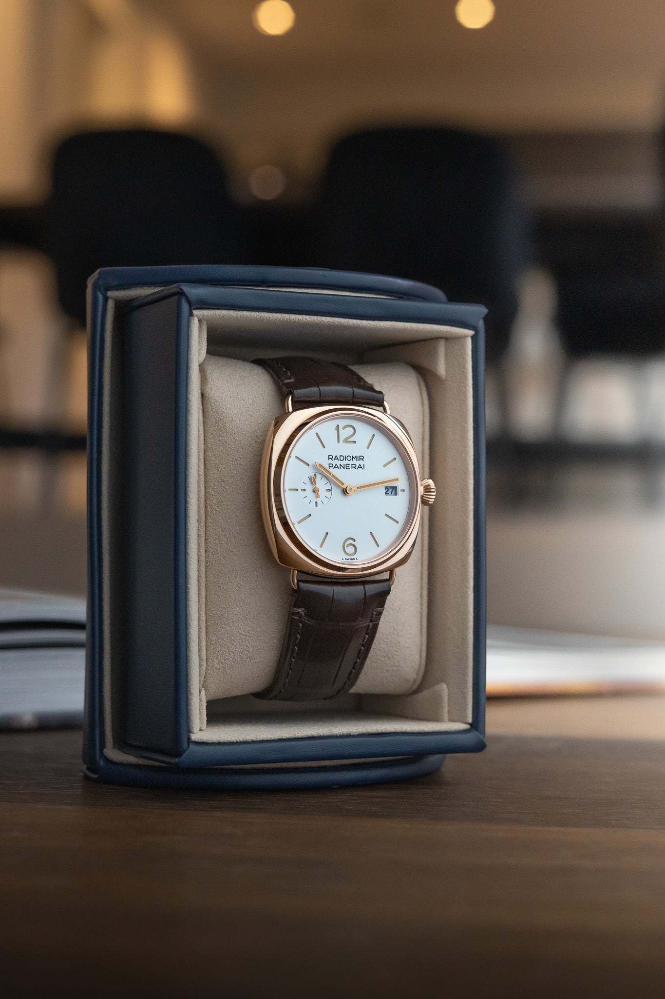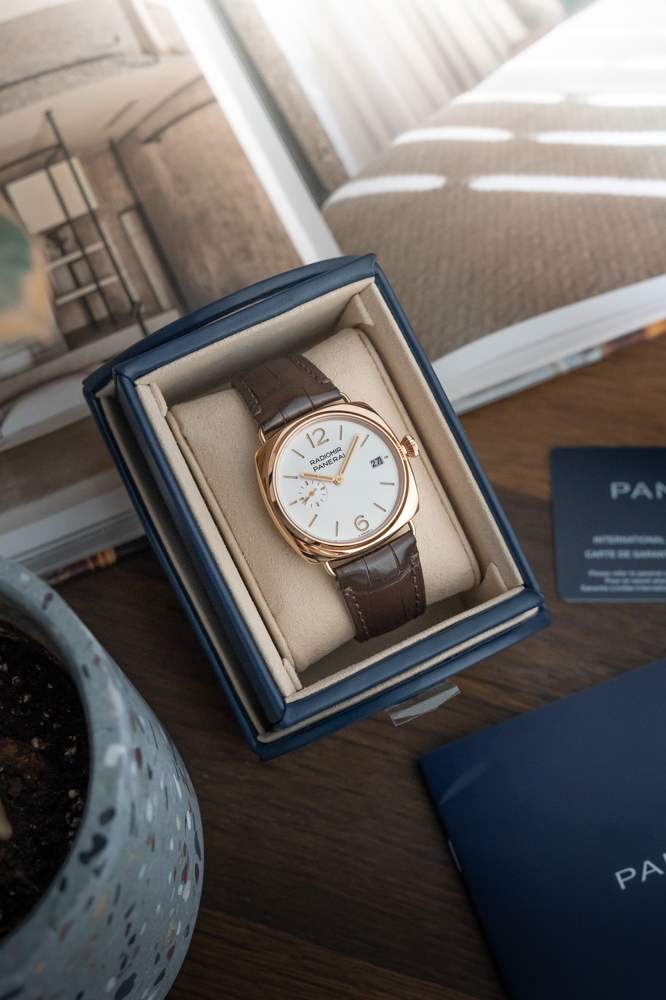 The most refined and wearable Radiomir ever made. A slim 40mm Goldtech™ case paired with Panerai’s clean, and deep-set sandwich dial.