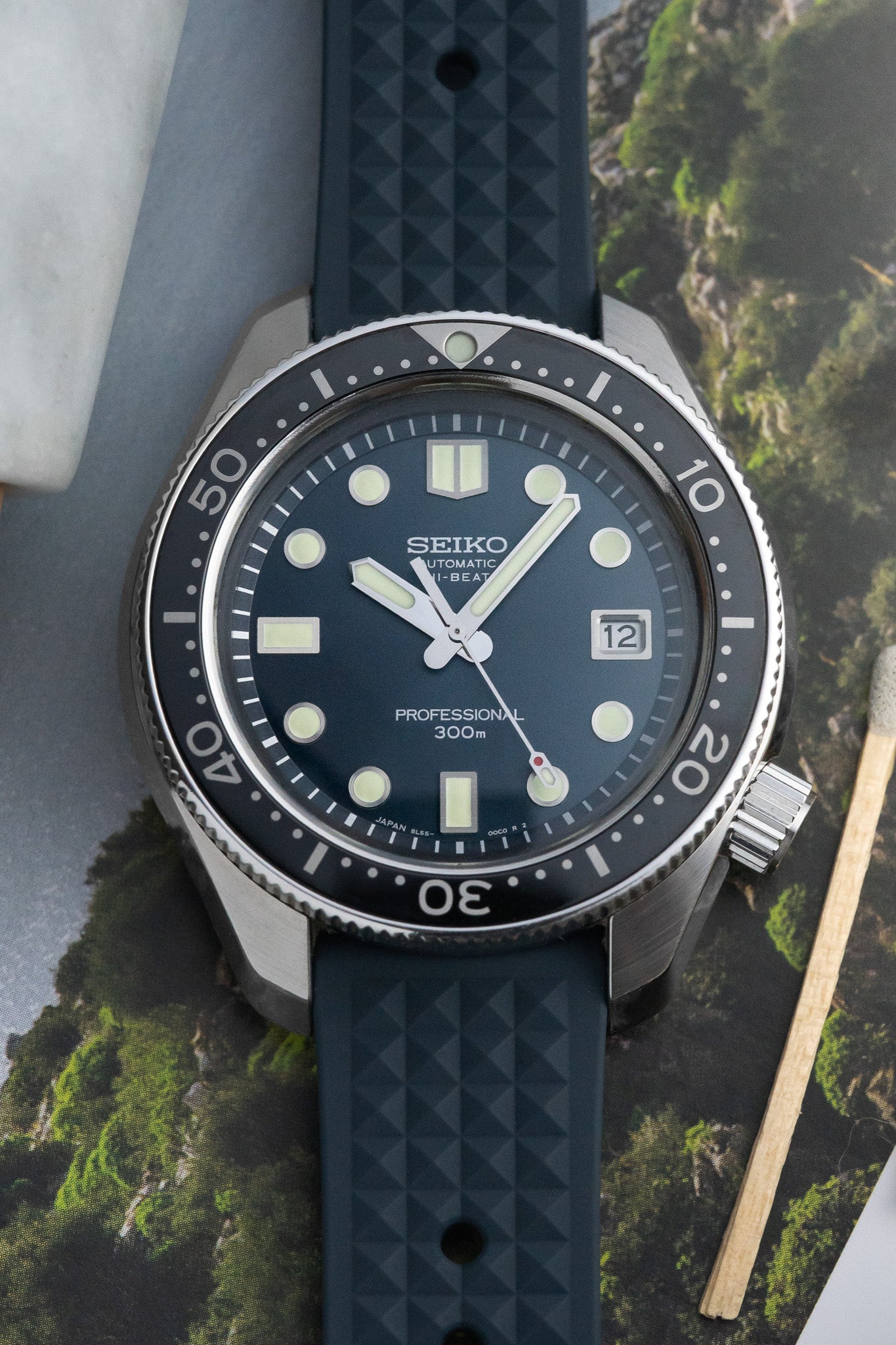 Produced in a limited edition of 1,100 pieces, this Hi-Beat diver features Seiko’s famed Caliber 8L55, a 36,000 vph movement developed and assembled by master craftsmen at the Shizukuishi Watch Studio. The sharp Zaratsu-polished case and rich metallic blue tones give this piece a subtle, modern elegance, balancing tool-watch toughness with collector refinement.