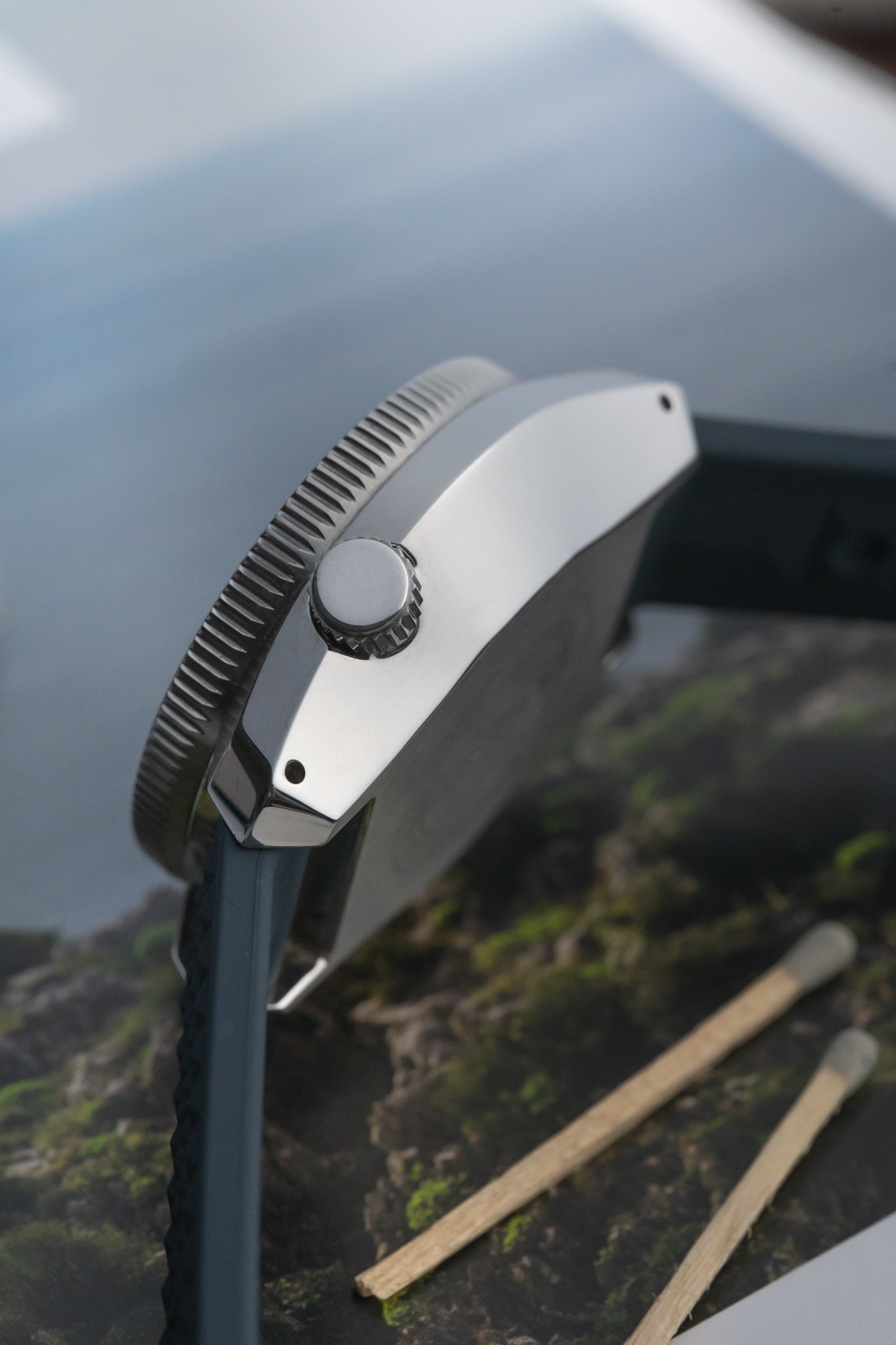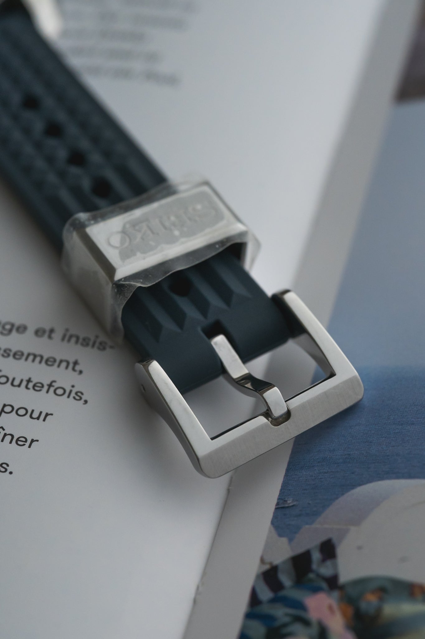 Strap: Blue silicone (19 mm between lugs)